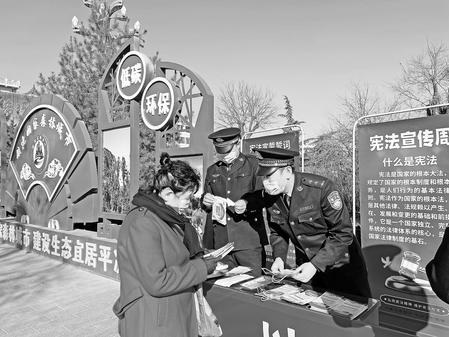 12月4日,平?jīng)霰O(jiān)獄組織民警在市人民廣場社區(qū)開展憲法宣傳進社區(qū)活動,通過向市民發(fā)放憲法手冊和宣傳彩頁等方式,讓廣大市民深入認識憲法、了解憲法。