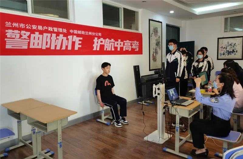 為了最大限度節(jié)省莘莘學(xué)子們緊張的復(fù)習(xí)時(shí)間,5月19日至20日,蘭州市公安局戶政管理處聯(lián)合中國郵政蘭州分公司,攜手七里河分局、七里河分局小西湖派出所及城關(guān)分局酒泉路派出所,市、區(qū)、派出所三級(jí)聯(lián)動(dòng),一起走進(jìn)蘭州西北中學(xué)與蘭州一中,將辦證窗口前移至校園,通過現(xiàn)場拍攝照片、離線采集指紋等方法,為即將參加高考的學(xué)生們提供“足不出校”即可辦理居民身份證的便捷服務(wù),將“服務(wù)群眾零距離”的服務(wù)承諾落到實(shí)處。