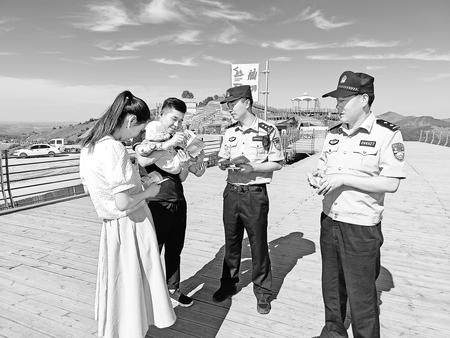 6月24日,民警在旅游景區(qū)開展反詐宣傳。
