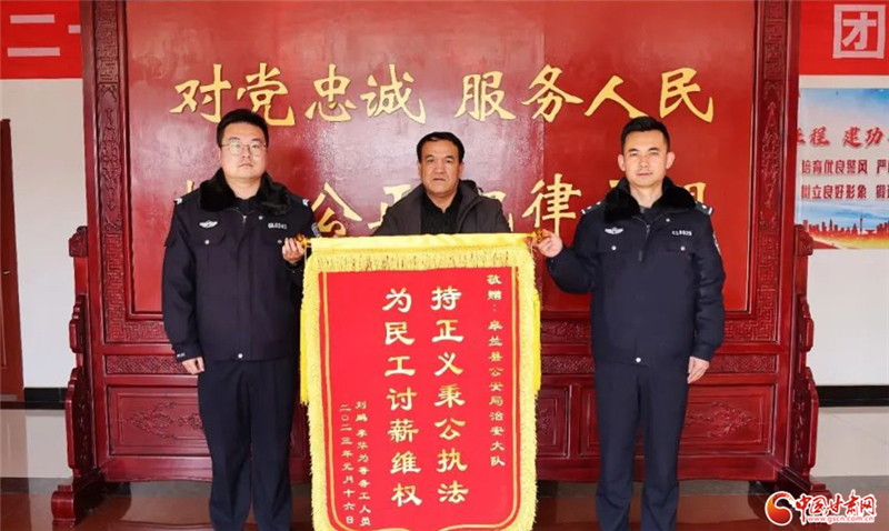 中國甘肅網(wǎng)2月3日訊(本網(wǎng)記者 程健)2月2日,劉先生代表20余名工友將一面印有“持正義秉公執(zhí)法,為民工討薪維權(quán)”的鮮紅錦旗送到了蘭州市皋蘭縣公安局,以此表達(dá)對縣局治安管理大隊民警幫其辛苦討要工資的感謝。