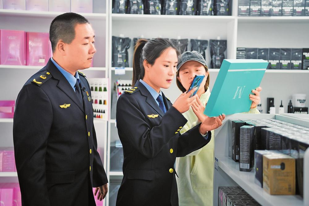 3月12日,在“3·15”國際消費者權(quán)益日來臨之際,蘭州市市場監(jiān)督管理局配合甘肅省藥品監(jiān)督管理局對化妝品批發(fā)市場進(jìn)行檢查,指導(dǎo)企業(yè)規(guī)范經(jīng)營,維護(hù)消費者權(quán)益。新甘肅·甘肅法治報記者王輝攝