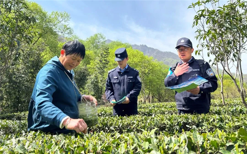 清明節(jié)后,隴南市康縣的茶樹鮮嫩的新芽迎風(fēng)而立,茶農(nóng)們穿行在茶樹間熟練地采摘嫩芽,同樣忙碌不歇的還有轄區(qū)派出所的民警們,他們上茶山、進(jìn)茶園、問(wèn)需求、解糾紛,成為春茶豐收畫卷中的一抹別樣的“警”色。