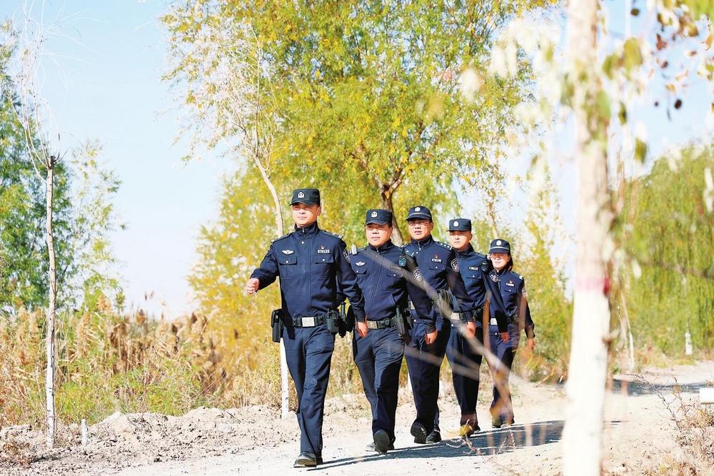 民警在濕地公園周邊巡邏。