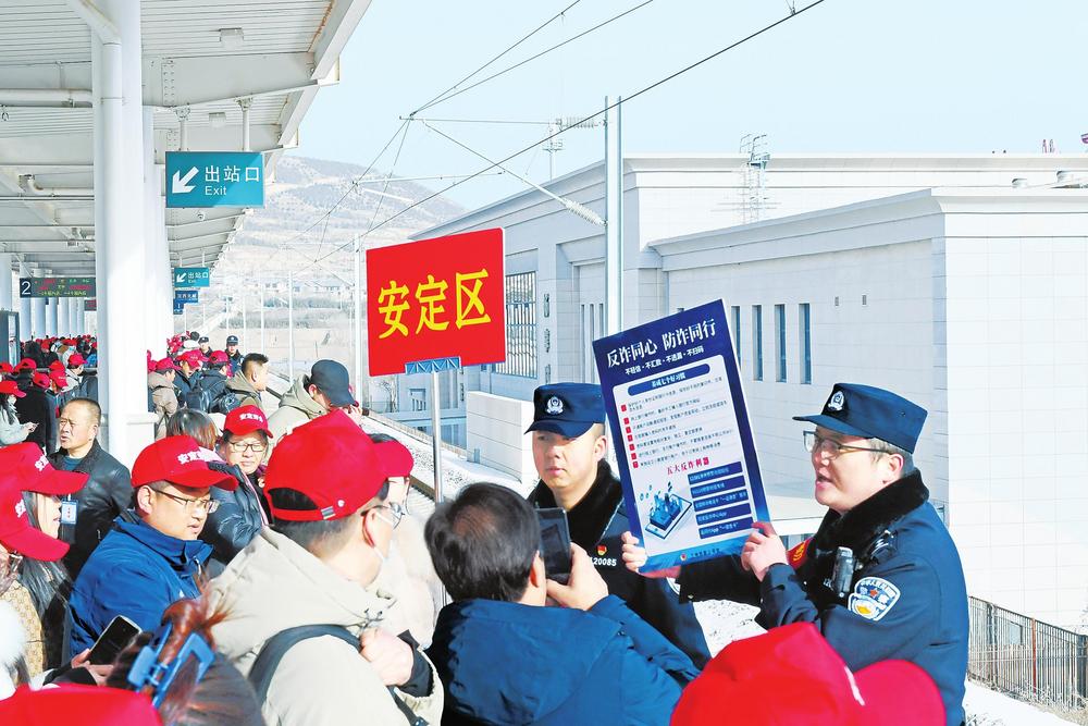 記者了解到,這批務(wù)工人員來自定西市各縣區(qū),既有返崗務(wù)工人員,也有新聘務(wù)工人員。為保障此次高鐵務(wù)工專列順利開行,蘭州鐵路公安處定西北站派出所積極與定西北車站、客運部門通聯(lián),專門開辟“綠色通道”,暢通進站、安檢、檢票等進站環(huán)節(jié),劃定專門候車進站區(qū)域,同時增派警力逐一引導(dǎo)務(wù)工人員有序進站,幫助提拿大件行李、講解防范電信詐騙小妙招,用心用情保障務(wù)工旅客乘車安全。