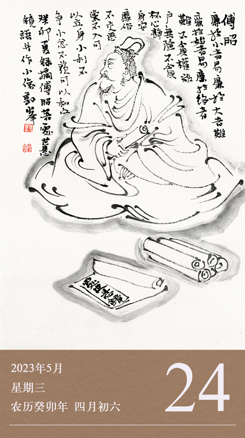 這些我們耳熟能詳?shù)母裱?,出自一本關(guān)于如何為人處世的經(jīng)典書籍——《處世懸鏡》。此書分為九卷,分別以一個(gè)字總攬,被人們稱為人生的九字箴言。這九字分別是:識(shí)、行、止、藏、忍、信、曲、厚、舍?!短幨缿溢R》的作者,就是我們今天要介紹的南朝著名清官傅昭。