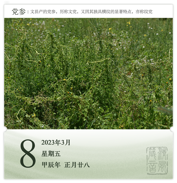 簡(jiǎn)介:黨參,多年生纏繞藤本,我國(guó)有名的藥食兩用植物,具有健脾益肺、養(yǎng)血生津之功效?,F(xiàn)代藥理研究表明,黨參還具有增強(qiáng)機(jī)體免疫力、保護(hù)胃腸道黏膜及抗?jié)?、促進(jìn)造血機(jī)能、延緩衰老等多種藥理作用。黨參也是保健品,可入膳食,可做茶也可泡酒。花果期7-10月。文縣產(chǎn)的黨參,歷稱(chēng)“文黨”,又因其獨(dú)具橫紋的顯著特點(diǎn),亦稱(chēng)“紋黨”,質(zhì)地優(yōu)良,歷史悠久,生長(zhǎng)特殊,加工考究,入藥精道。其藥用價(jià)值與人參并列,為質(zhì)高的滋補(bǔ)佳品。
