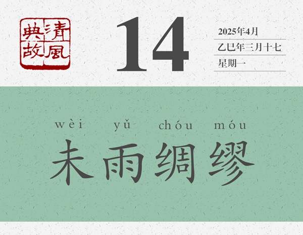 這是一首寓言詩。一般認(rèn)為,是周武王病故后,弟弟周公旦寫給周武王的兒子周成王的誡勉詩。時(shí)成王幼弱,周公旦以詩言志,以鳥為喻,表明自己對周成王的一片苦心,以及對國事的一片忠心。“迨天之未陰雨,徹彼桑土,綢繆牖戶”,便形象地表明了自己的一片苦心。后人遂以“未雨綢繆”為典,比喻凡事都應(yīng)提前做好準(zhǔn)備,以防事到臨頭難以應(yīng)對。《朱子家訓(xùn)》:“宜未雨而綢繆,毋臨渴而掘井。”