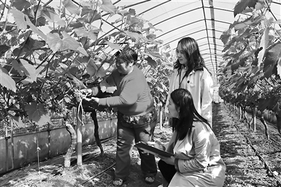 江蘇省東臺市紀委監(jiān)委開展護航農村特色產業(yè)發(fā)展專項監(jiān)督,深入查糾鄉(xiāng)村振興項目資金監(jiān)管和涉農補貼發(fā)放等方面存在的問題。圖為該市紀委監(jiān)委工作人員在葡萄種植大棚走訪了解相關情況。王茜 攝
