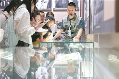 圖為志愿者在中國人民革命軍事博物館為參觀者講解抗戰(zhàn)歷史。新華社記者 劉金海 攝