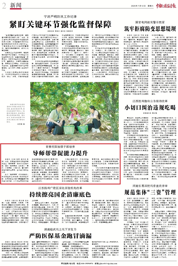 近日,甘肅省慶陽市紀委監(jiān)委制定出臺“導師幫帶”練兵計劃實施方案,通過“導師帶徒、實踐育人”模式,以老帶新、以案代訓,著力提升年輕干部政治素養(yǎng)、業(yè)務能力和專業(yè)水平。