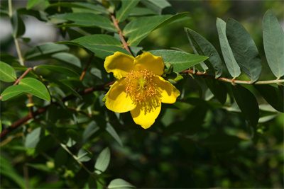 簡介:金絲桃,半灌木。花期6-8月,果期9-11月?;利悾┯^賞。果實及根供藥用,果可作連翹代用品,根能祛風、止咳、下乳、調(diào)經(jīng)補血,也可治跌打損傷。