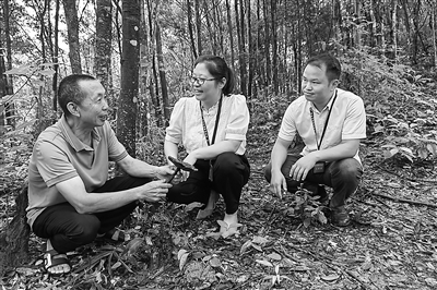 福建省龍巖市紀(jì)委監(jiān)委將深化集體林權(quán)制度改革作為政治監(jiān)督重要內(nèi)容,不斷夯實(shí)高質(zhì)量發(fā)展底色。圖為該市武平縣紀(jì)檢監(jiān)察干部在萬安鎮(zhèn)捷文村林下靈芝種植基地了解有關(guān)情況。曹建橋 攝