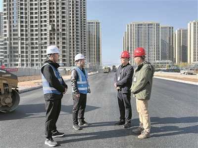 圖為近日,甘肅省蘭州市紀(jì)委監(jiān)委駐市住建局紀(jì)檢監(jiān)察組工作人員在七里河區(qū)崔家大灘片區(qū)T095-1#道路項(xiàng)目施工現(xiàn)場(chǎng),了解項(xiàng)目進(jìn)展情況。吳靜 攝