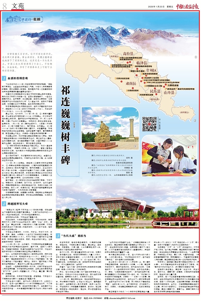 在張掖,每一寸土地都有著獨(dú)特的詩(shī)情和紅韻。近年來(lái),當(dāng)?shù)丶o(jì)委監(jiān)委依托深厚的歷史文化和豐富的紅色資源,把每一個(gè)歷史經(jīng)典、紅色故事深度融入城市建設(shè)和黨員干部教育中,全方位、多角度厚植崇廉尚潔的文化土壤,使之成為砥礪初心、淬煉黨性的鮮活教材和生動(dòng)課堂,真正以清廉之效、清廉之治、清廉之美助力紅色祁連續(xù)寫更加輝煌絢麗的篇章。(孫現(xiàn)富)
