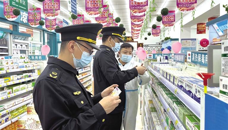 執(zhí)法人員督促藥店落實(shí)疫情防控措施 鄭麗君 攝