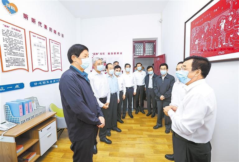 8月26日至28日,中共中央政治局常委、全國人大常委會委員長栗戰(zhàn)書在甘肅就黃河保護(hù)法立法進(jìn)行調(diào)研。這是8月26日,栗戰(zhàn)書在慶陽市西峰區(qū)后官寨鎮(zhèn)人大代表之家調(diào)研。新華社記者 龐興雷