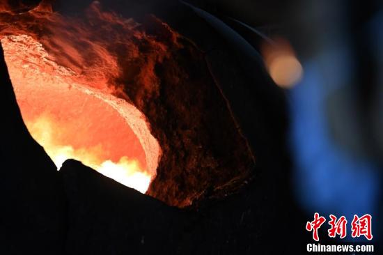近期,位于甘肅省金昌市金川集團的鎳冶煉廠閃速爐車間內(nèi),操作員正在進行高鎳锍緩冷工作。