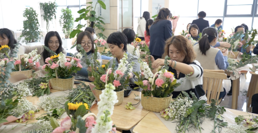 繁花似錦報春來,天姿國色抒情懷?;顒蝇F(xiàn)場花香四溢、芬芳溫馨,充滿著春天般的氣息,大家手捧鮮花,在花藝老師的講解下,開始學習各種鮮花所蘊含的花語祝福和選花、裁剪、搭配、造型及養(yǎng)護等藝術插花技巧。隨后,女工們將原本普普通通的月季、康乃馨、蝴蝶蘭、滿天星、向日葵等多種花材修剪整枝,根據不同的色彩和形狀有層次地搭配在一起。通過精心構思造型、發(fā)揮創(chuàng)意想象,有的注重意境創(chuàng)設追求,有的突出枝情花韻之趣,有的抒展自然樸實風格……在細致地修飾和精心地創(chuàng)作下,一枝花、一棵草都變得詩情畫意和清新怡人,節(jié)日的喜慶氣氛瞬間升騰。