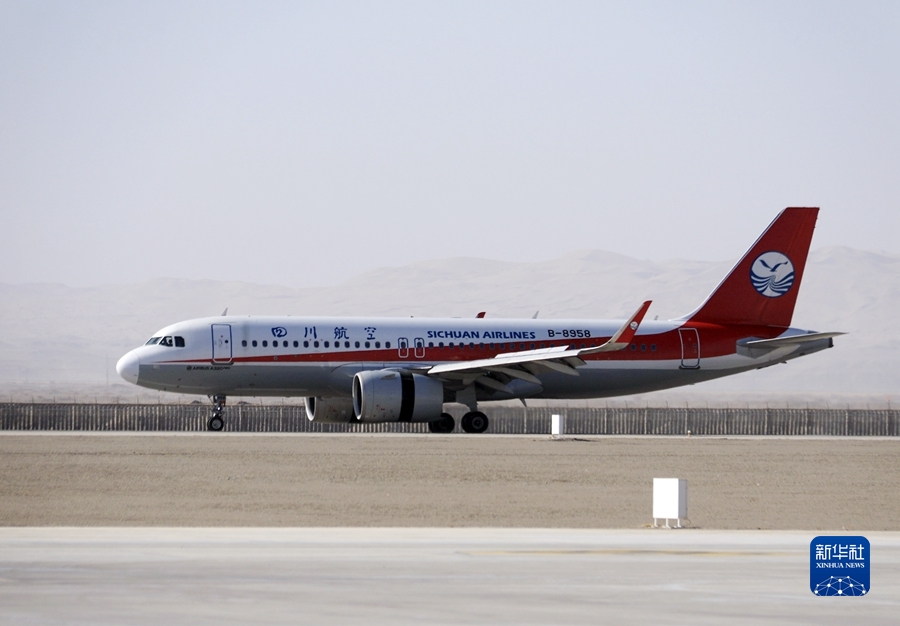 3月26日,由四川航空公司執(zhí)飛的成都至敦煌往返直達(dá)航線(xiàn)正式通航。這是首航航班降落在甘肅敦煌莫高國(guó)際機(jī)場(chǎng)。新華社發(fā)(張曉亮攝)