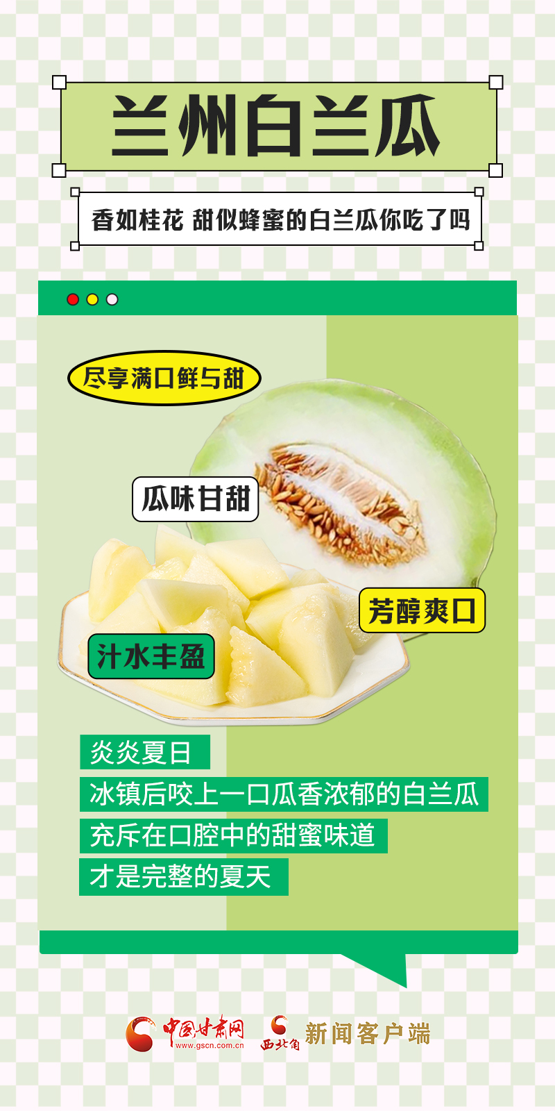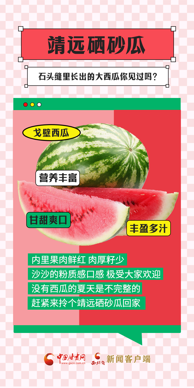 甘肅是中國自然地理多樣的省份,從隴南一直到敦煌,跨越了三大高原地帶、四大氣候類型,日照充足、干燥多風、降水量少、晝夜溫差大,這種獨特的氣候特點,十分適宜水果的生長。盛夏時節(jié),甘肅各地時令瓜果陸續(xù)上市,不僅豐富了百姓的“果盤子”,也鼓起了農民的“錢袋子”。“瓜果經濟”在隴原大地上助力鄉(xiāng)村振興。