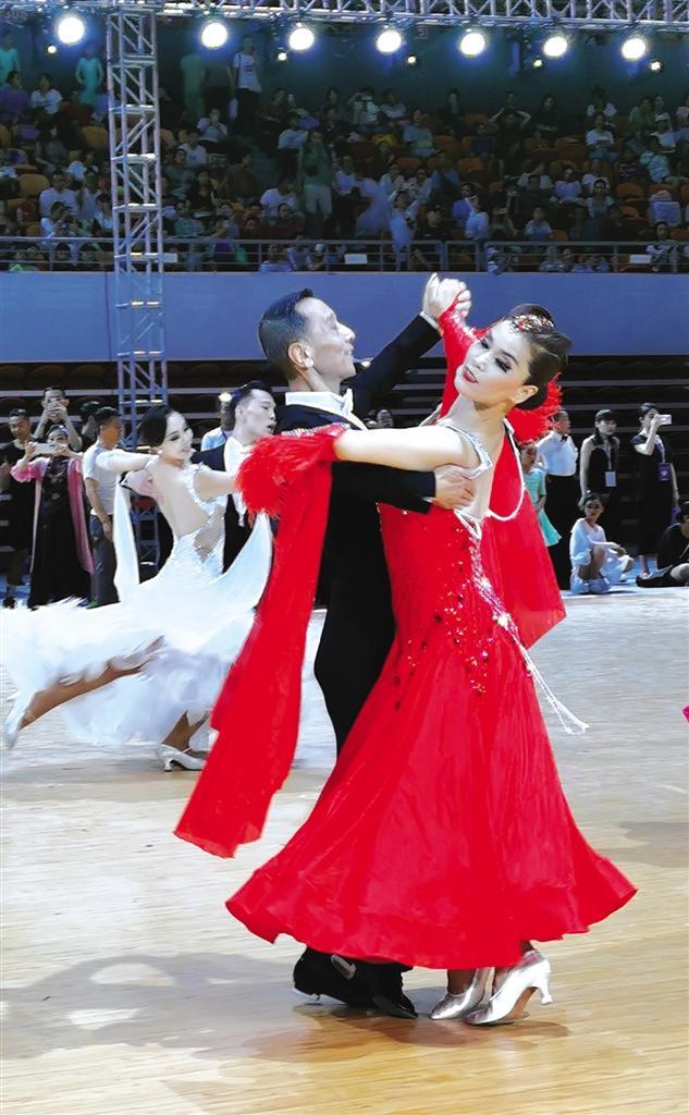 當天的蘭州奧體中心綜合館內燈光璀璨、激情四射。伴著或動感或舒緩的音樂,優(yōu)雅浪漫的華爾茲、熱情奔放的探戈、性感狂野的倫巴……舞者們依次上場,將最優(yōu)美、最富激情、充滿藝術活力與創(chuàng)造力的高水平體育舞蹈展現(xiàn)在觀眾和裁判面前。