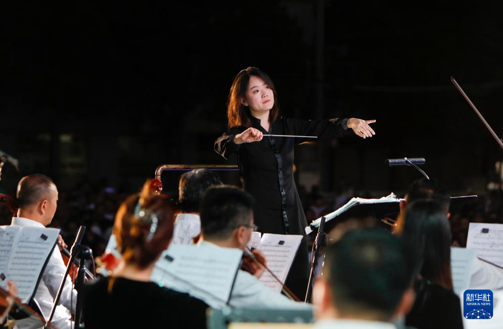 7月31日,甘肅交響樂團首席指揮王璐在指揮演奏。新華社記者 方欣 攝
