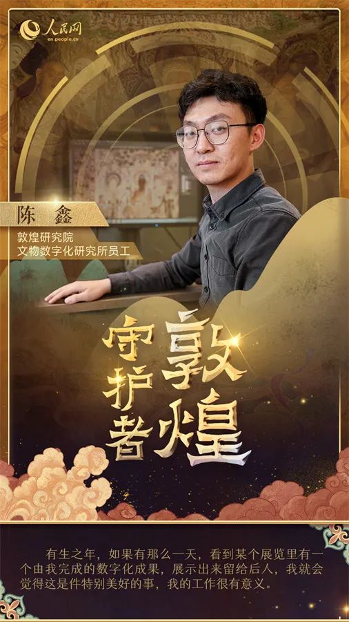 在敦煌研究院文物數(shù)字化研究所,工作人員們正開展數(shù)字化項目,將莫高窟的壁畫和雕塑變成數(shù)字化產(chǎn)品。陳鑫就是其中一員,在文物數(shù)字化研究所工作的四年,他負(fù)責(zé)壁畫的數(shù)字化處理。“我們的目標(biāo)是利用現(xiàn)代技術(shù)保護這些文物,讓它們活起來并傳承下去,讓我們的后代能夠看到它們。”