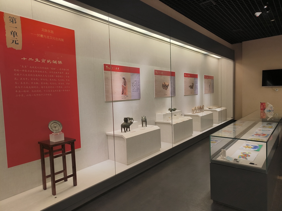 該展覽利用文物、文物展板和生肖文創(chuàng)相結(jié)合的模式,形成墻面、展柜和地面上下聯(lián)動(dòng),又協(xié)調(diào)統(tǒng)一的互動(dòng)關(guān)系,向廣大觀眾立體式呈現(xiàn)天水悠久的伏羲文化文明史和伏羲時(shí)代的智慧,突出彰顯天水作為中國文明史起源地在中華文明發(fā)展歷史進(jìn)程中的重要作用,向世界詮釋中國龍文化的淵源與博大,弘揚(yáng)中華文明的悠久歷史,感知中華文化的博大精深。律回春漸,新元肇啟,歡迎大家走進(jìn)天水市博物館,共度一個(gè)祥和喜慶的文化年!