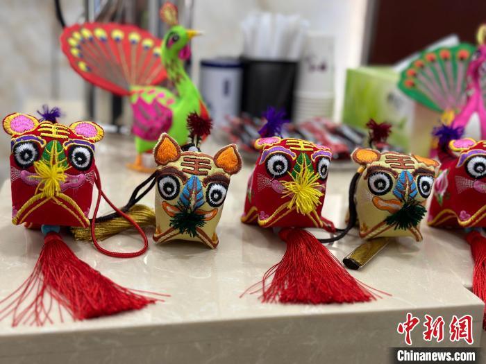 圖為發(fā)布會(huì)現(xiàn)場(chǎng)慶陽香包展示。楊娜 攝