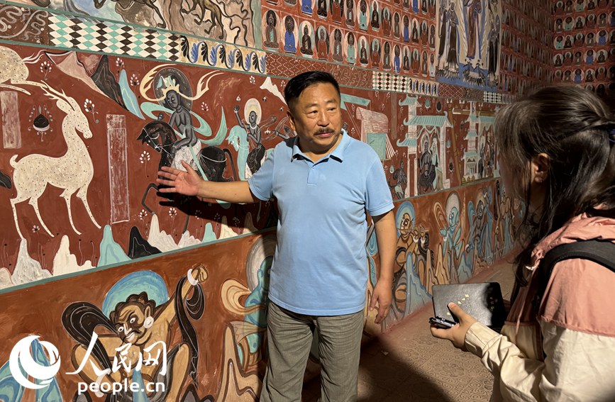 “左邊站著的是打窟人,右邊是畫(huà)工和塑匠,都是曾經(jīng)鑄就莫高窟輝煌的工種。”說(shuō)著話(huà),尤路平手里的活一刻也沒(méi)耽擱。