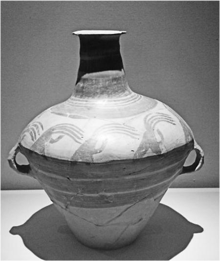 馬家窯類(lèi)型長(zhǎng)羽舞蹈紋壺