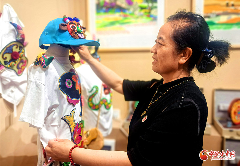 趙星萍的藝術(shù)創(chuàng)作扎根鄉(xiāng)土,從剪紙系列起步,拓展至創(chuàng)意香包,如今又融合剪紙、香包、刺繡、布貼畫等傳統(tǒng)技藝,開發(fā)出香包童裝T恤、刺繡帽子、剪紙臺(tái)燈等特色文創(chuàng)產(chǎn)品。其作品既傳承了隴東大地簡潔明快的藝術(shù)基因,又展現(xiàn)出新時(shí)代的創(chuàng)新活力。