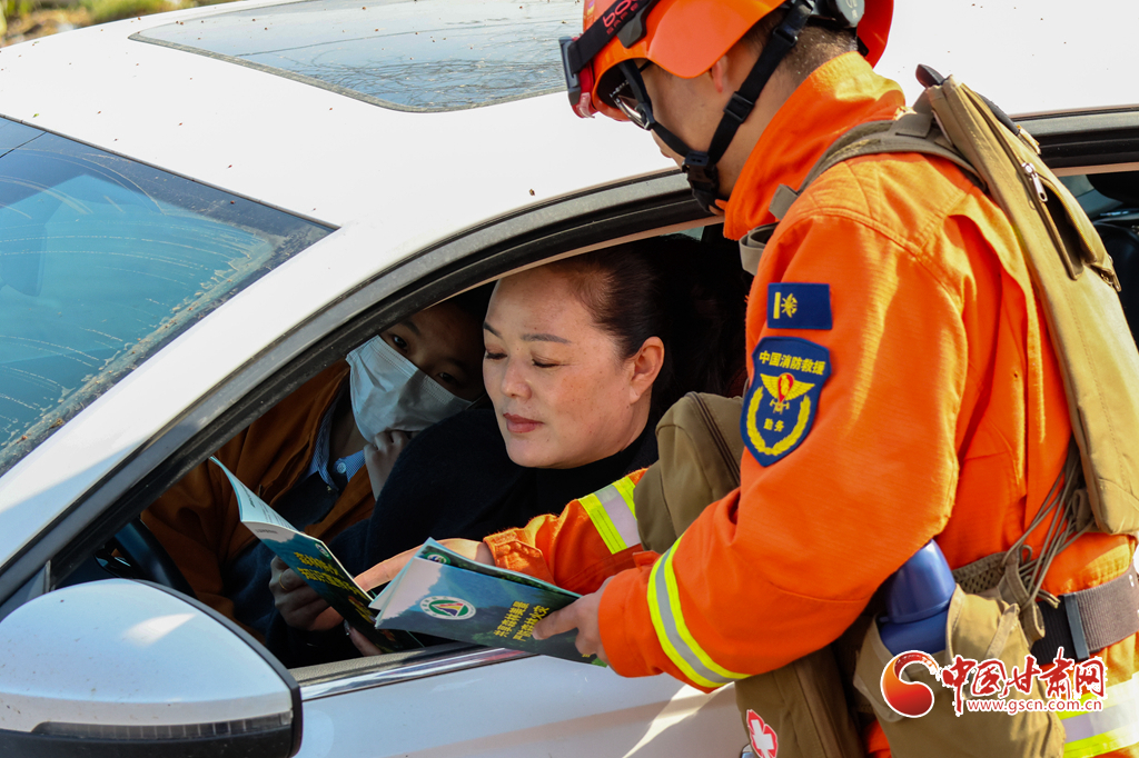 甘肅消防救援機(jī)動總隊蘭州支隊消防救援人員向進(jìn)山群眾普及防火常識