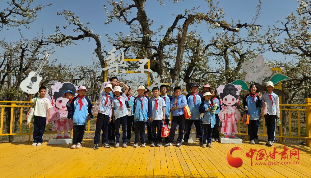 四月的什川古梨園,萬畝梨花競相綻放,如云似雪,層層疊疊鋪滿了黃河兩岸的河谷。4月9日上午,皋蘭縣什川明德小學的孩子們排著整齊的隊伍,背著小小的水壺和筆記本,走進這片被譽為“世界第一古梨園”的生態(tài)課堂,開啟了一場別開生面的春季研學實踐活動。