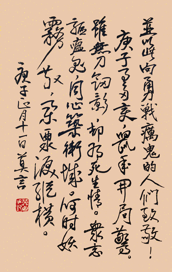 “同心驅(qū)癘鬼,眾志筑長城” 莫言 作