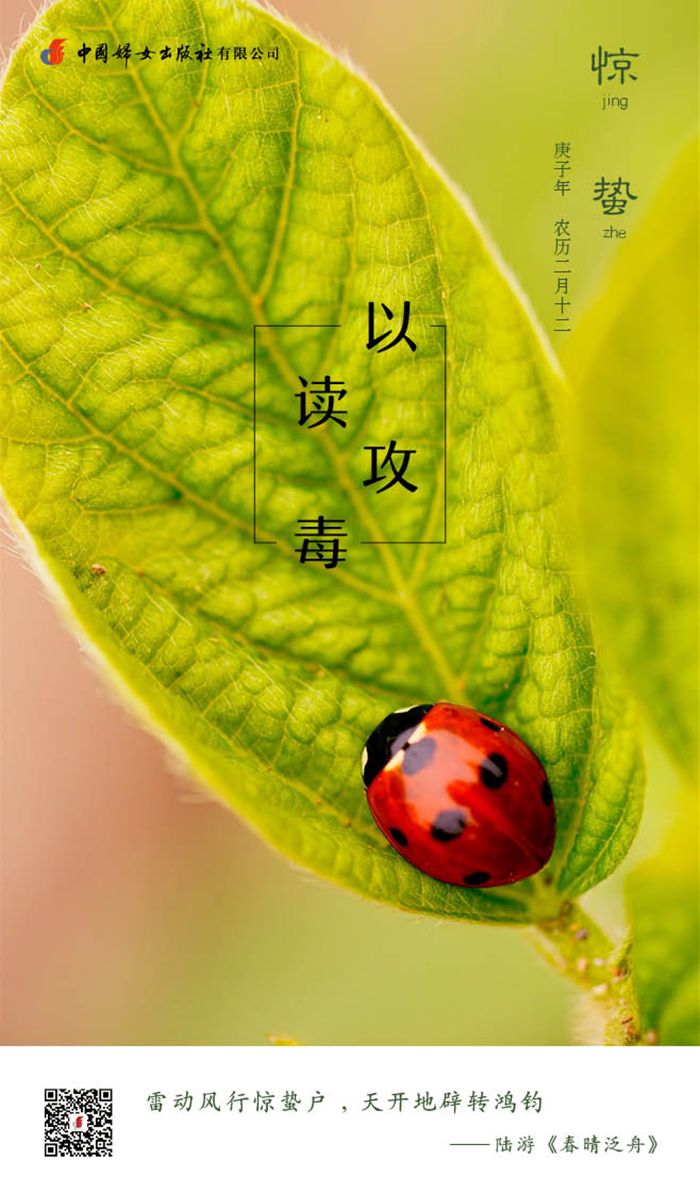 “萬卷古今消永晝,一窗昏曉送流年”,在抗疫重于踏青、防毒甚于訪友的當(dāng)下,一書在手物我兩忘的閱讀就是宅家攻毒的法寶。“我讀,故我在”,自新華網(wǎng)悅讀頻道在其元宵節(jié)海報上首倡“以讀攻毒”至今,“以讀攻毒”已成文化界熱詞。今日驚蟄,萬物復(fù)蘇,為給居家久蟄的人們鼓勁祈福,展現(xiàn)新華網(wǎng)悅讀推廣人聯(lián)盟與全國人民一道守望相助、共克時艱,新華網(wǎng)客戶端、新華網(wǎng)悅讀頻道、新華網(wǎng)公益頻道特舉辦“以讀攻毒同題公益海報聯(lián)展”活動,以此祈愿國泰民安、山河無恙!祈愿每一位讀者讀有所獲、安康順意!