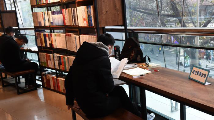 資料圖:圖為重慶書(shū)城恢復(fù)營(yíng)業(yè),市民戴著口罩閱讀?!≈芤?nbsp;攝