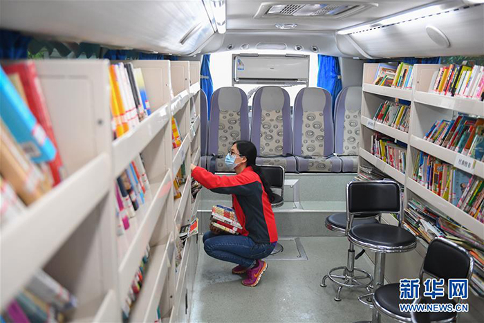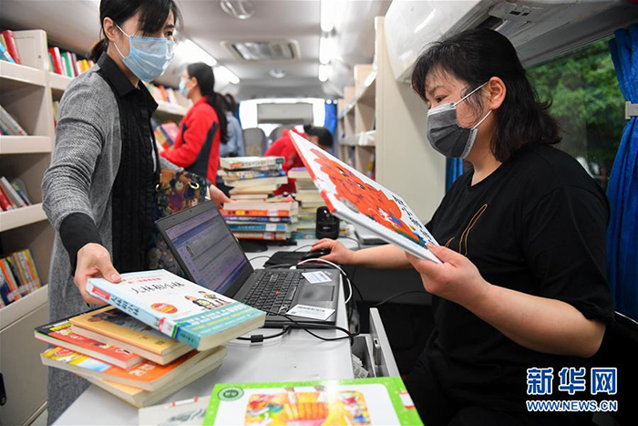 3月26日,在長(zhǎng)沙岳麓區(qū)石嶺塘社區(qū),市民在流動(dòng)圖書(shū)館里挑選書(shū)籍。 近日,在做好疫情防控工作的同時(shí),長(zhǎng)沙流動(dòng)圖書(shū)館恢復(fù)運(yùn)營(yíng)。長(zhǎng)沙流動(dòng)圖書(shū)館是長(zhǎng)沙圖書(shū)館的總分館流動(dòng)服務(wù)項(xiàng)目之一,以大巴車(chē)為載體,每月定期到社區(qū)、學(xué)校、企業(yè)、工地等區(qū)域,為市民提供閱覽、咨詢(xún)、辦證、借書(shū)、還書(shū)等便捷化公共服務(wù)。 新華社記者 陳澤國(guó) 攝