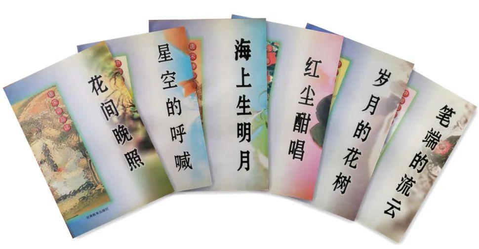 這套書初版的名字也讓我至今喜歡,《星空的吶喊——中國(guó)現(xiàn)代詩(shī)品讀》《筆端的流云——中國(guó)現(xiàn)代美文品讀》《紅塵酣唱——元曲品讀》《海上生明月——唐宋詩(shī)品讀》《花間晚照——唐宋詞品讀》《歲月的花樹——中國(guó)古代美文品讀》,這些富有詩(shī)情畫意的書名,既是對(duì)選材主題的精準(zhǔn)點(diǎn)睛,也是對(duì)文章精神的生動(dòng)概括,常常讓我有身未動(dòng)心已遠(yuǎn)的沉醉。在我以后的編輯生涯里,這些書名都曾經(jīng)是我心目中的標(biāo)準(zhǔn)范式。