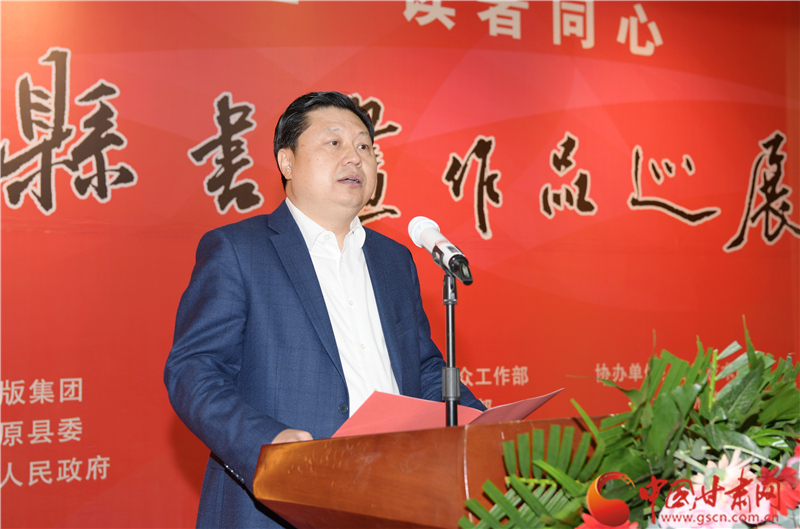 劉永升在致辭中說,鎮(zhèn)原是中國書法之鄉(xiāng),讀者是甘肅文化名片,企縣因扶貧而結(jié)緣,因文化而牽手。自2017年定點(diǎn)幫扶鎮(zhèn)原以來,讀者出版集團(tuán)著力實(shí)施了一批“看得見、摸得著、留得下、有成效”的好項目,探索出一條富有“讀者”特色的幫扶路子。特別是立足文化企業(yè)定位,堅持扶智扶志,通過開展勞動技能培訓(xùn)、幫助改善教育條件、推介宣傳地方資源、建設(shè)“讀者鄉(xiāng)村文化驛站”等一系列卓有成效的工作,切實(shí)打好“文化扶貧”牌,既堅定了廣大群眾戰(zhàn)勝貧困的信心和決心,更激發(fā)了貧困群眾依靠雙手、勤勞致富的積極性、主動性。此次與鎮(zhèn)原縣聯(lián)合舉辦書畫巡展,是開展文化扶貧、助力書香社會建設(shè)的務(wù)實(shí)之舉,也是提升“文化鎮(zhèn)原”影響力、加快地方文化產(chǎn)業(yè)發(fā)展的積極行動,更是提高貧困群眾文化素質(zhì)、振奮群眾精神風(fēng)貌的重要舉措。