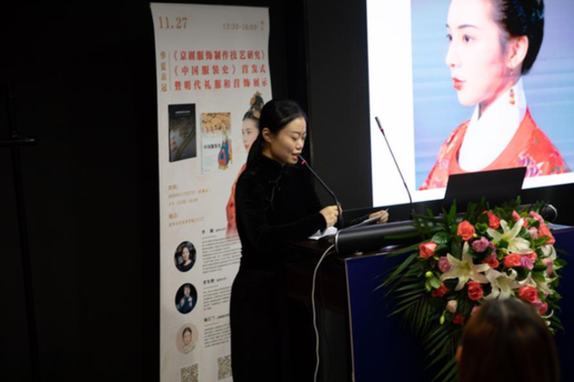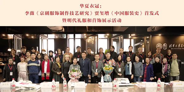 11月27日,“華夏衣冠:李薇《京劇服飾制作技藝研究》與賈璽增《中國(guó)服裝史》首發(fā)式暨明代禮服和首飾展示活動(dòng)”在清華大學(xué)美術(shù)學(xué)院成功舉行。該活動(dòng)由清華大學(xué)美術(shù)學(xué)院染織服裝藝術(shù)設(shè)計(jì)系與東華大學(xué)出版社聯(lián)合主辦。來(lái)自故宮博物院、中國(guó)國(guó)家博物館等40余位專家、學(xué)者、京劇服飾非遺傳承人和設(shè)計(jì)師共同參與。