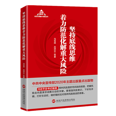 《堅(jiān)持底線思維著力防范化解重大風(fēng)險(xiǎn)》是該系列叢書的總論,由中央黨校(國家行政學(xué)院)副校長應(yīng)急管理培訓(xùn)中心(中歐應(yīng)急管理學(xué)院)主任(院長)馬寶成等合作撰寫,現(xiàn)已由國家行政管理出版社正式出版發(fā)行。