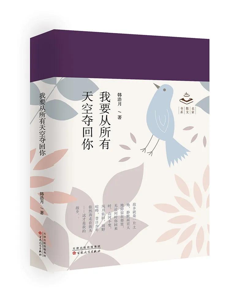 近日,知名文化評論人韓浩月的散文精選集《我要從所有天空奪回你》出版。這是一本關(guān)于故鄉(xiāng)主題的作品集,全書分為《望故鄉(xiāng)》《一個被撕成兩半的人》《遠(yuǎn)與近》《浪潮來臨》四部分,書名出自茨維塔耶娃一首波瀾壯闊的情詩。韓浩月表示,書名里的“你”是虛指,是一種正在擴散、變淡、消失的事物,而“奪回”表明了一種姿態(tài)、一個愿望,釋放出強烈的情感信號。