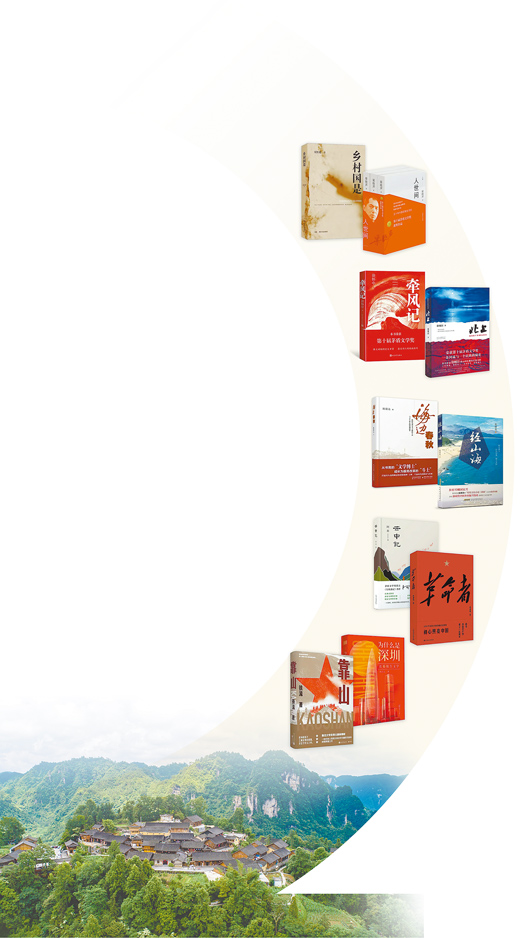 書影圖片從上至下依次為《鄉(xiāng)村國是》《人世間》《牽風(fēng)記》《北上》《海邊春秋》《經(jīng)山海》《云中記》《革命者》《為什么是深圳》《靠山》。資料圖片