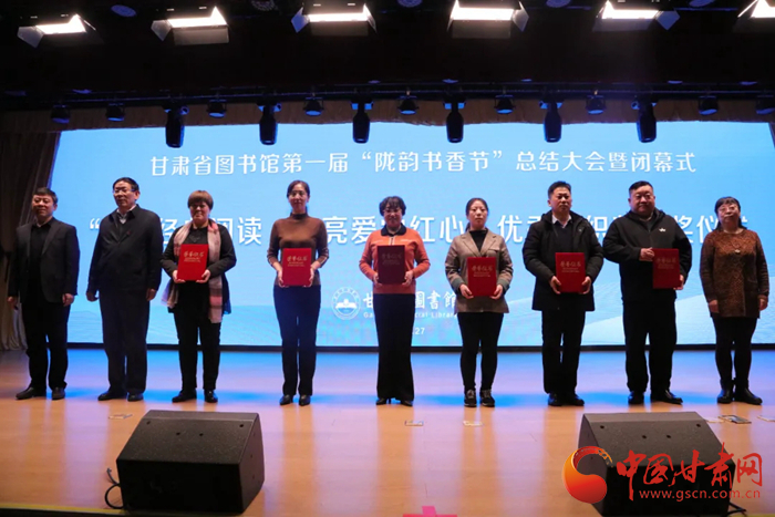 中國甘肅網(wǎng)12月28日訊(本網(wǎng)記者 張?zhí)m琴 通訊員 吳鵬)12月27日,歷時8個月的甘肅省圖書館第一屆隴韻書香節(jié)圓滿落幕。閉幕儀式上播放了第一屆“隴韻書香節(jié)”活動總結(jié)短片和書香家庭宣傳短片,公布了“隴韻書香節(jié)”形象標識(LOGO)方案,并為“甘肅省第一屆書香家庭”獲得者、“紅色經(jīng)典閱讀 點亮愛黨紅心”活動獲獎?wù)哳C獎。