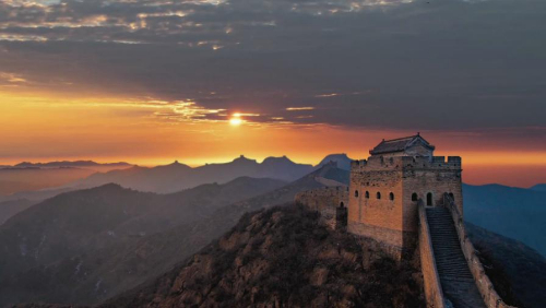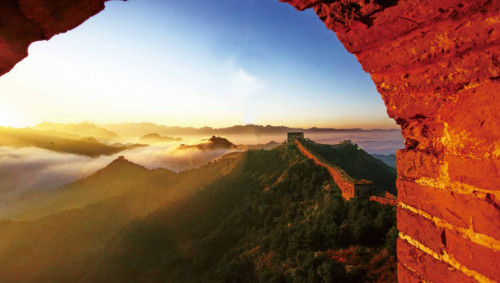 跨峻嶺,穿荒原,橫瀚海,經(jīng)絕壁,縱橫十萬里。望不斷長龍烽垛,雄關(guān)隘口,猶如玉帶明珠,點綴成江山錦繡。起伏奔騰,飛舞盤旋,長城就是中國人給這個世界增添的偉大奇跡。