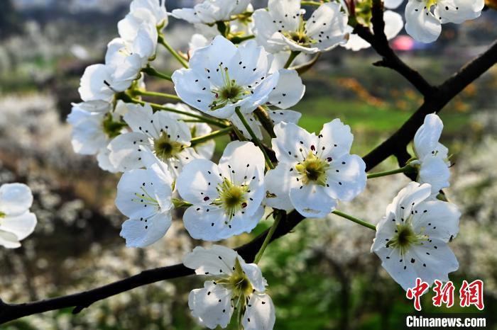 資料圖:鳥兒在梨樹枝頭停留。劉峰 攝