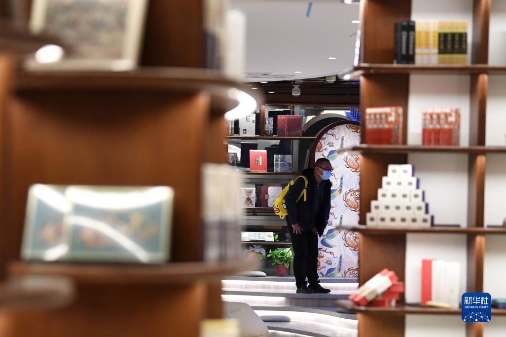 讀者在敦煌書局挑選書籍(4月21日攝)。新華社記者 杜哲宇 攝
