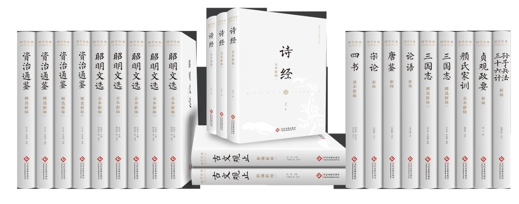 叢書第一輯共12種23冊,包括《四書讀本新繹》《詩經(jīng)全本新繹(全三卷)》《昭明文選全本新繹(全五卷)》《古文觀止新編新繹(上下)》《唐鑒新繹》《宋論新繹》《論語新繹》《顏氏家訓全本新繹》《資治通鑒精選新繹(全四卷)》《三國志精選新繹(上下)》《孫子兵法·三十六計新繹》《貞觀政要新繹》,內(nèi)容涉及政治、哲學、文學、歷史、軍事等。