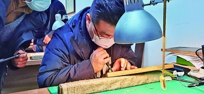 專家在雕刻古籍書板 資料圖片